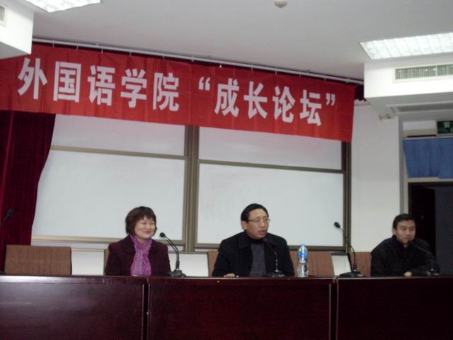 2009年12月30日晚,在南区4号楼311学术报告厅,澳门十大电子正规游戏网站举办的"成长论坛"系列讲座第二次开讲,十大电子官网副院长、语言与传播研究所所长张智中博士做客"成长论坛",副院长杨道云、学工办主任兼团总支书记李向东共同参加了当晚活动。 张智中博士讲述了从中学教师到大学教授、从中学求学到读博士后的经历,让学生们感受到了三个方面的启示:打好基础是学业成功的保彰;勇于实践才能促进就业;"读书破万卷"引领事业成功!为了促进大学生多读书,张智中博士谈了他的读书理念:就是这一生至少要读1000本书,并且他现在已经快达到了,这就相当于古诗中所说的"读书破万卷",希望同学们要树立一生读1000本书的目标,只有多读书,才能让你提升智慧,从而厚积薄发,左右逢源。张博士讲完后,与在场学生进行了互动交流,学生们针对大学生活提出了一些问题,例如:如何处理学习与考研的关系?学好日语需要读哪些书?如何让自己保持心理平衡、不断进取?张博士一一作答,其诙谐的话语、智慧的思维获得了同学们的阵阵掌声。