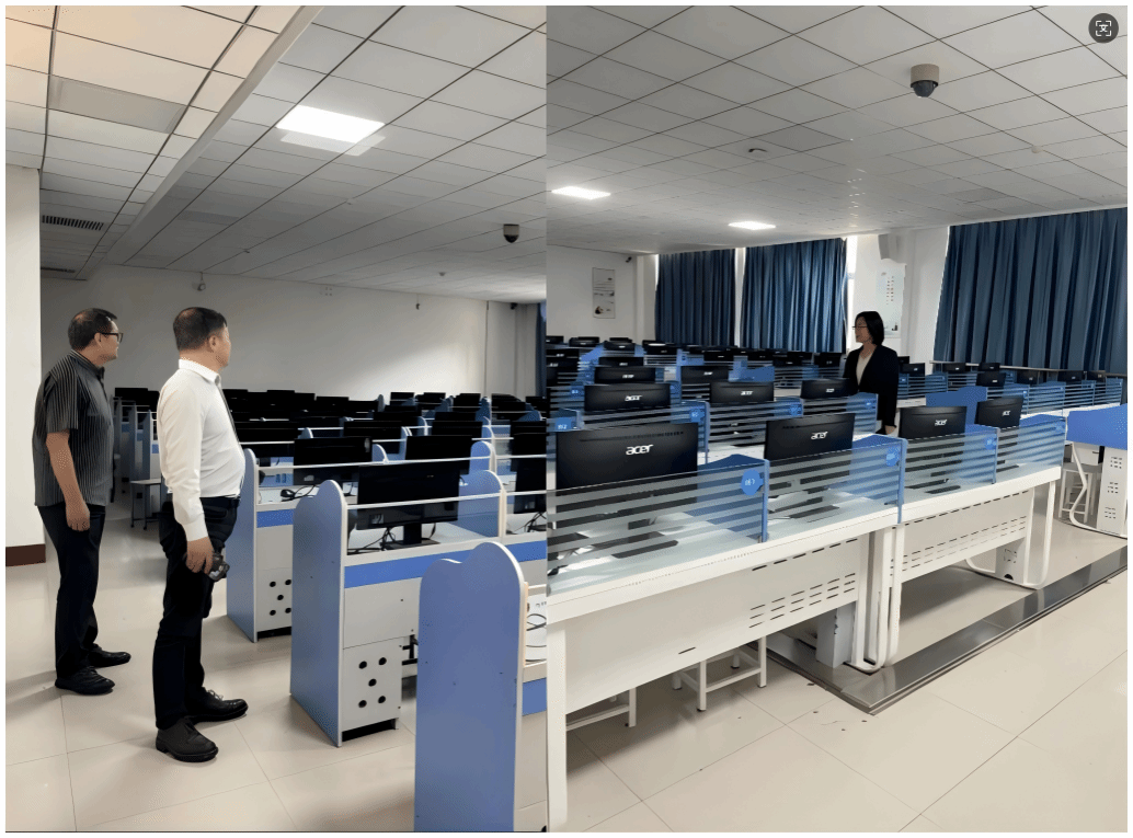 检查组深入每一间实验室,重点检查了用电安全、安全出口状况、门口安全信息牌设置以及日常使用记录等方面。