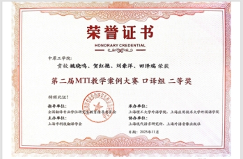大赛旨在丰富MTI教学的多样性,汇聚不同高校的翻译硕士专业在MTI教学过程中积累的经验做法,同时为各类学校的MTI课程提供具有实践指导意义的教学案例。十大电子官网依托河南省知识产权外译研究中心,聚焦知识产权外译研究与实践,深挖地理标志外译素材和案例,由姚晓鸣、贺红艳教师,MTI研究生刘豪洋、田泽瑞组成的团队以“AI+口译模拟项目:河南省地标产品国际推介会”为题的参赛案例荣获全国口译组二等奖;关成勇与MTI研究生白雨晨、李巧丽、杨晨斌团队以“探索‘四大怀药’译后编辑 讲好中国地标故事”为题的参赛案例荣获全国笔译组三等奖。在2025 MTI案例教学研讨会暨“第二届 MTI教学案例大赛”颁奖典礼平行论坛上,贺红艳代表团队的主旨发言,获得与会专家的一致好评。