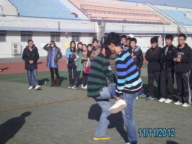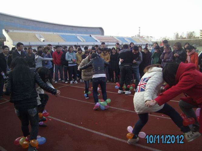 11月10日下午,迎着寒风,同学们热情高涨地参加了这次运动会。运动会进行了拔河、跳大绳、骑慢车、心手相连、背人接力、单腿斗鸡、踩气球和多人多足共8个项目。选手们在赛场上摩拳擦掌、跃跃欲试,同学们也激情高涨,欢呼雀跃。赛场上精彩不断,最精彩的当属拔河,裁判一声令下,选手们拼尽全力,奋力角逐。11日上午,同学们在温暖的日光中完成了余下的比赛,在比赛的过程中寻找到了快乐和外国语这个大家庭的感觉。