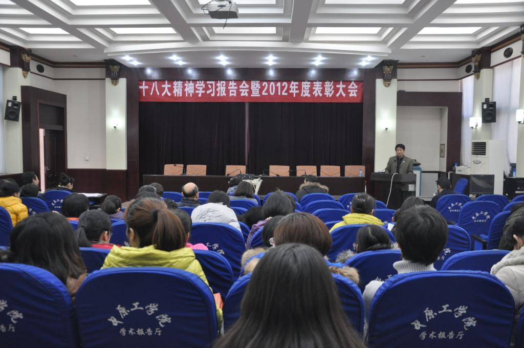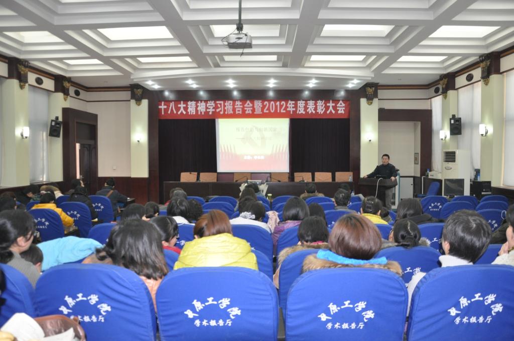 2013年1月11日下午两点,澳门十大电子正规游戏网站十八大学习报告会暨2012年度表彰大会在北区图书馆一楼学术报告厅召开,教务处处长李惠杰与十大电子官网全体教职工参加了本次会议。