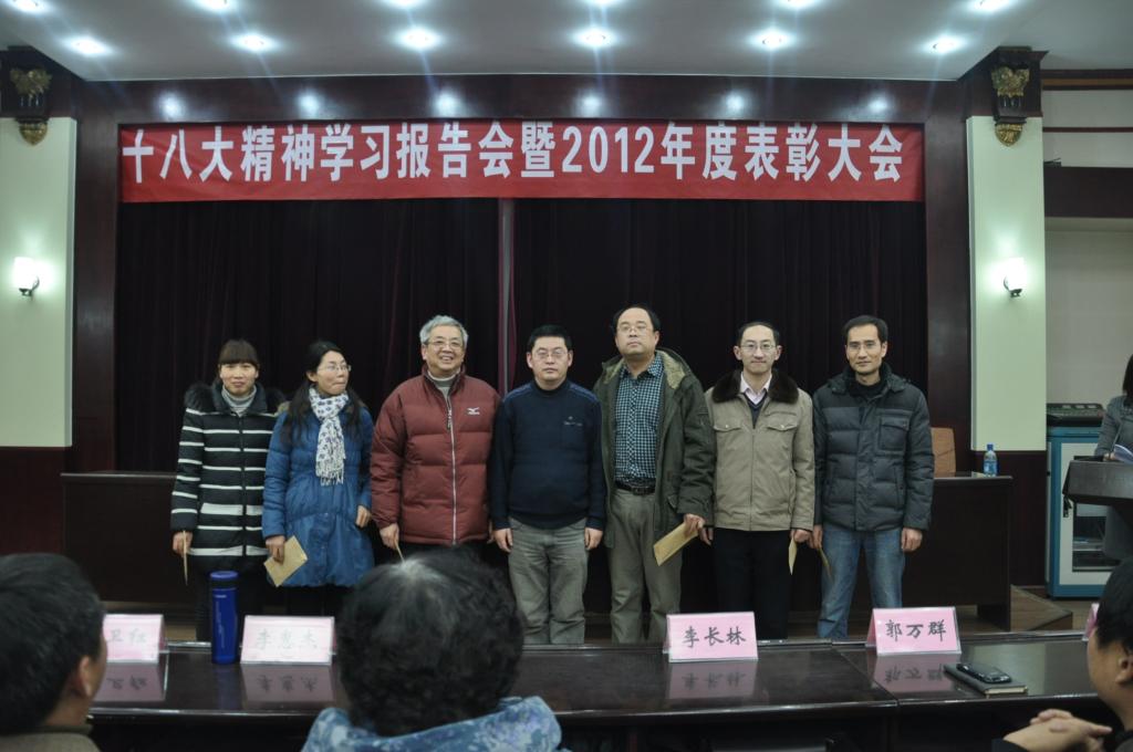 首先,总支书记李长林为十大电子官网全体职工做了学习十八大专题报告。报告题为《报告的创新与创新的报告》,李书记从指导思想,五位一体,核心价值观等十个方面对十八大精神做了深刻而具体的解读。其次,院长郭万群结合学习十八大精神就澳门十大电子正规游戏网站学科团队建设进行了总结和部署。最后副院长杨道云宣讲了本年度十大电子官网获奖的科研和教学成果名单,教务处处长李惠杰与院领导共同为获奖教师进行颁奖,