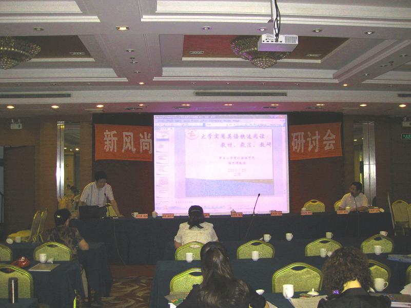 2010年7月23日,普通高等教育“十一五”国家级规划教材《新风尚实用英语》培训研讨会在上海召开。来自全国43所高等院校的145位外语界知名专家及一线大学英语骨干教师代表参加了会议,会议由上海交通大学出版社主办。在研讨会上,十大电子官网澳门十大电子正规游戏网站院长郭万群教授作为该套丛书的副总主编,受邀做了题为“大学实用英语快速阅读:教材、教法、教研”的专家报告,澳门十大电子正规游戏网站青年教师李向民代表十大电子官网,受邀上了一节“大学实用英语视听说”公开示范课,澳门十大电子正规游戏网站部分领导和教师代表随行参加了会议。