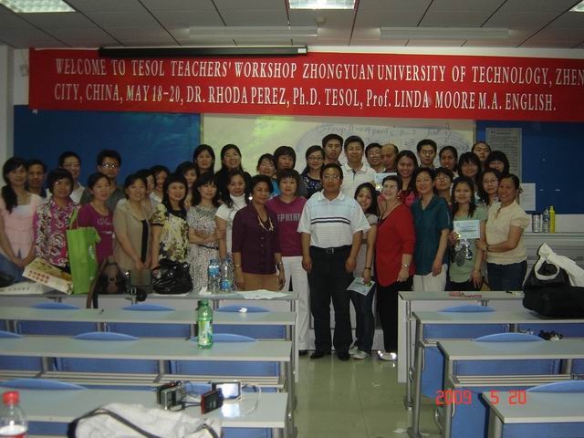 为促进十大电子官网教师与国外大学教师的交流,引进先进的教学理念和方法,十大电子官网特邀美国专家和菲律宾博士组成的亚太跨文化代表团(Asia-Pacific Cross Cultural Institute )到外语系进行学术交流。十大电子官网副院长杜建慧、外办主任孙玮、外语系副主任郭万群、张智中接待了访问团,并对今后的进一步合作进行了商讨。 5月18日至21日晚上,美国专家(Mrs. Linda F. Moore, Director of APCCI)和菲律宾博士(Dr. Rhoda Perez)为外语系教师进行师资培训,参加培训的教师还有河南工业大学和河南教育学院的教师代表、在河南工作的菲律宾教师。Dr. Rhoda Perez就语言学、教学法、英美语音的对比和课堂如何与学生互动进行详细的阐述,并让外语系教师代表、工大教师代表、菲律宾教师代表讲示范课,在座各位教师进行讨论、点评。通过培训我系共有60名教师被授予国际通用英语教学证书TESOL(Teaching English to Speakers of Other Languages)。 在访问期间,代表团还三次参与课堂教学,向同学们介绍美国的教育体制、大学生活和学习英语的方法,对同学们关心的话题一一解答,并对主动回答问题的同学赠送纪念徽章。外专们幽默的语言,丰富的表情使课堂气氛非常活跃。