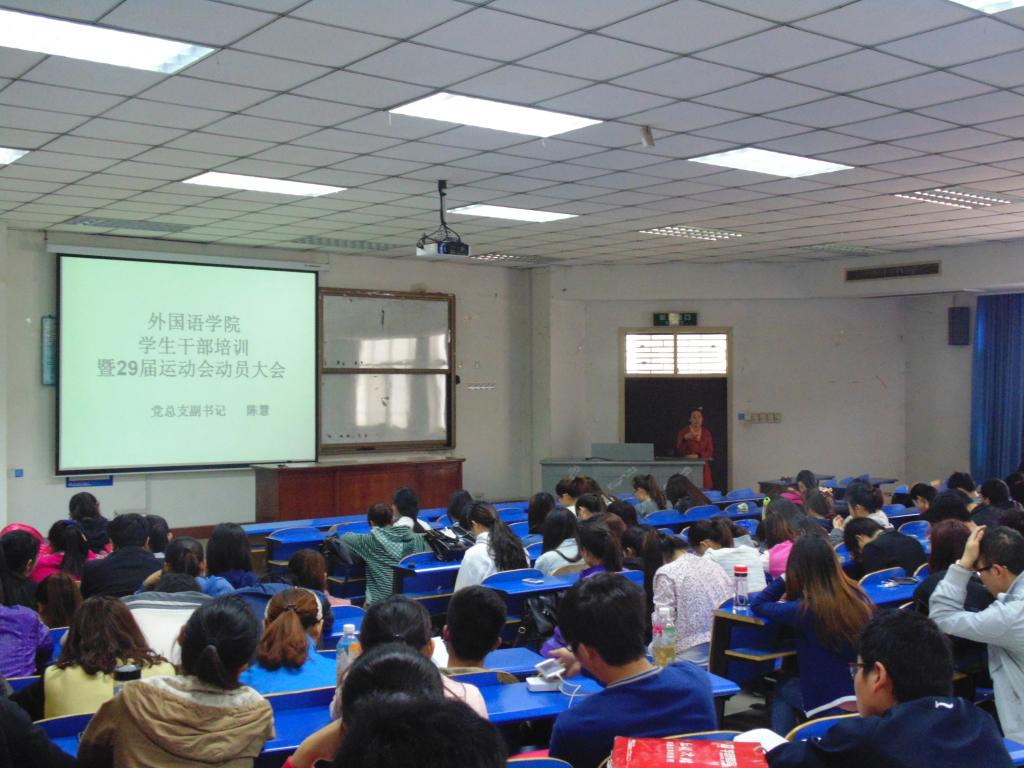 四月份,十大电子官网召开了澳门十大电子正规游戏网站学生干部培训暨第二十九届运动会动员大会。大会由团总支副书记张振华主持,党总支副书记陈慧主讲。