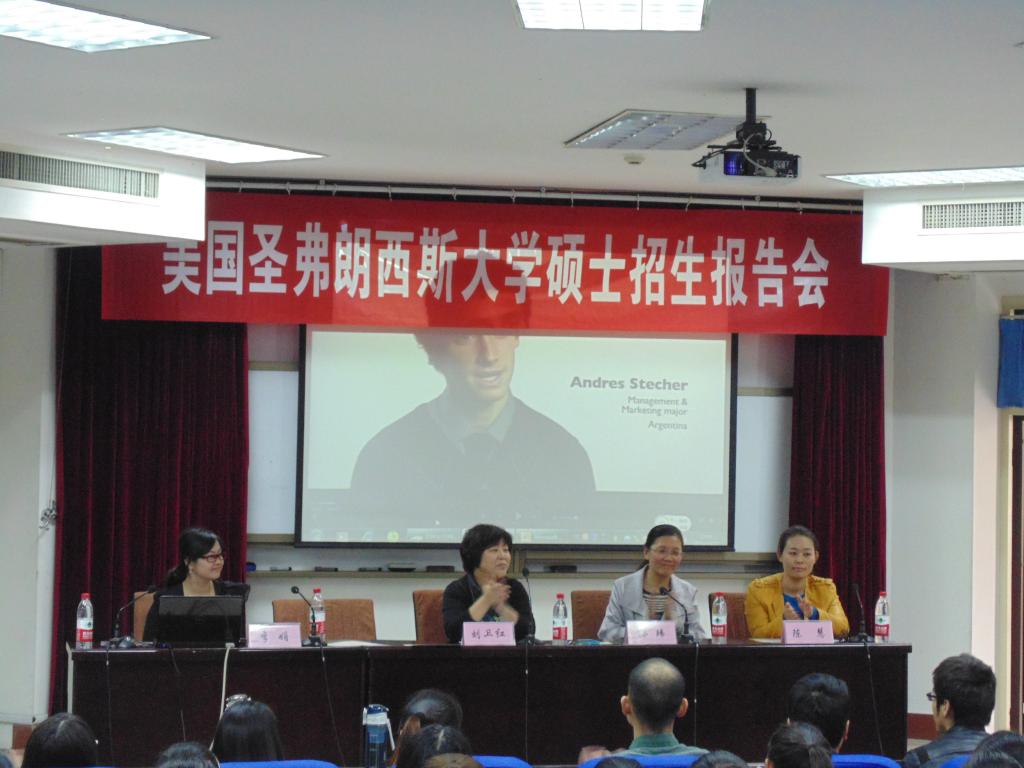 10月22日中午,美国圣弗朗西斯大学硕士招生宣讲会于中原工学院南苑4号楼311学术报告厅举行。国际教育学院院长孙玮、澳门十大电子正规游戏网站副院长刘卫红、党总支副书记陈慧以及澳门十大电子正规游戏网站全体辅导员、全体学生参加了此次报告会。会议由刘卫红院长主持,由圣弗朗西斯大学中国区代表李娟主讲。