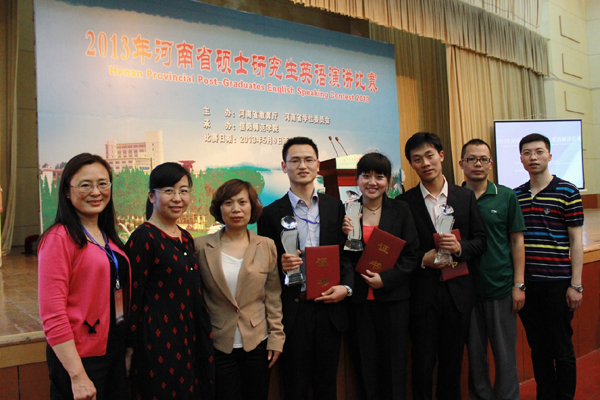 2013年5月9-10日,由河南省学位委员会、河南省教育厅主办的2013年河南省硕士研究生英语演讲比赛在依山傍水、风景秀丽的信阳师范学院举行。本次大赛4月初启动,以“我的中国梦”为主题,经过全省20所研究生培养高校初选,共有74名选手进入决赛。十大电子官网选派的3名选手,历经两天的半决赛、决赛环节,最终获得优异成绩。在74名选手中,其中,政法学院程子洋同学排名第6荣获二等奖,能源与环境学院徐子龙同学排名第15荣获三等奖,政法学院刘志博荣获优秀奖。