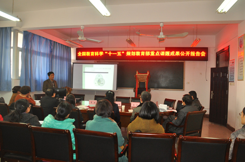 12月11日 下午,在11号教学楼214室,十大电子官网召开了全国教育科学规划教育部重点课题成果公开报告会。澳门十大电子正规游戏网站院长郭万群教授做了《大学英语课堂教学多模态话语研究》成果汇报。洛阳理工学院副院长邱天河教授、中原工学院副院长杜建慧教授、副院长曹健教授、高教研究所所长高斌教授、副所长于永民教授、郑州升达经贸管理学院公共外语部主任王莉莉教授等八位专家,十大电子官网高教研究所综合信息科工作人员、课题组所有成员,澳门十大电子正规游戏网站大学英语骨干教师代表参与并聆听了报告会。报告会由高斌教授主持。