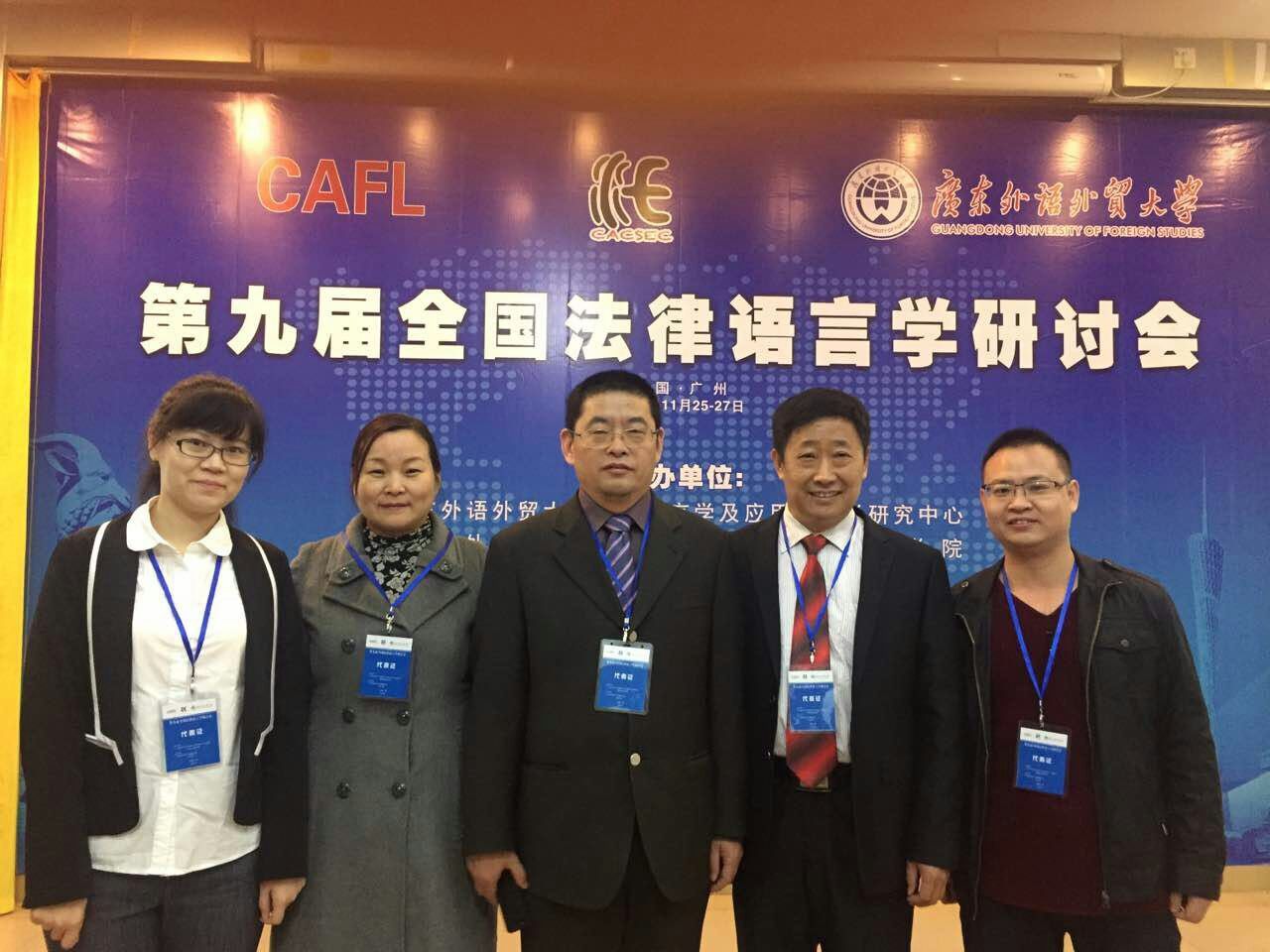 2016年11月26日至27日,第九届全国法律语言学研讨会在广东外语外贸大学举行。来自英国、中国香港以及内地20多所高校、研究机构及司法实务部门的近120位国内外专家、学者汇聚一堂,分享各自的最新研究成果。十大电子官网澳门十大电子正规游戏网站院长郭万群教授一行5人参加了会议。