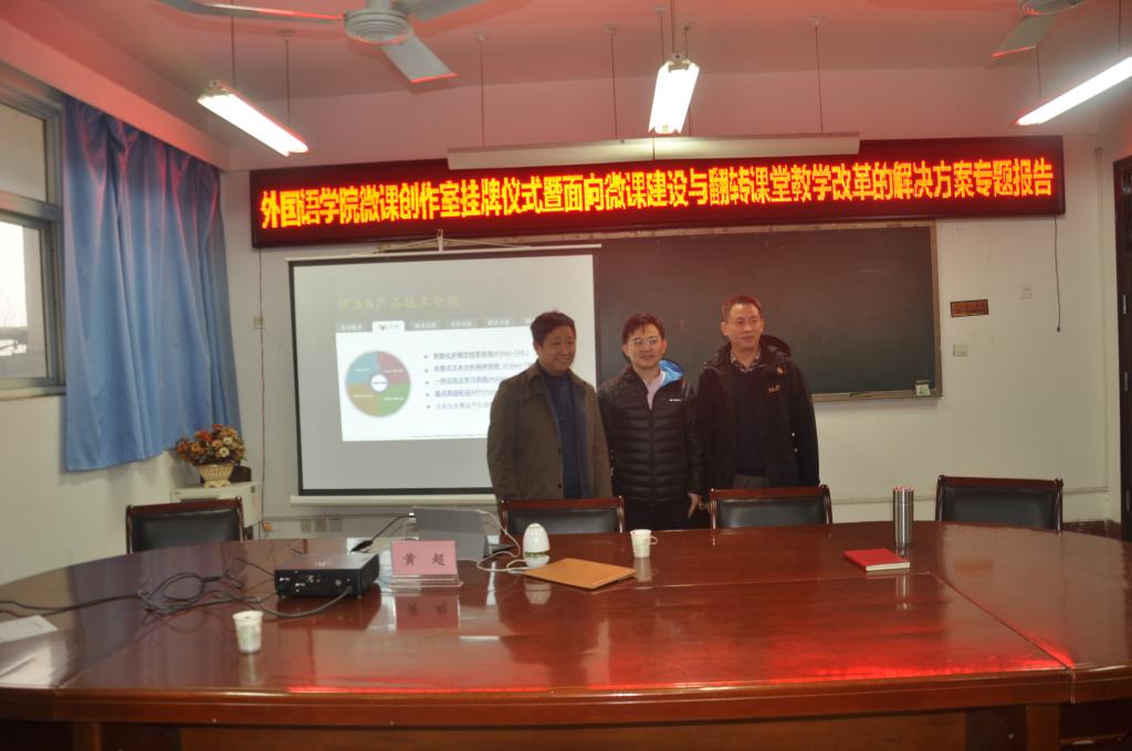 为了提升微课创作室成员的理论和技术水平、顺利启动创作室,澳门十大电子正规游戏网站特邀无锡伊点网络科技有限公司创始人(微软研究院前研究员)黄超博士做了“面向微课建设与翻转课堂教学改革的解决方案”的专题报告。黄超博士从智能化多模态检索系统、全景式文本分析阅评系统、全息化多模态平行语料库和一体化自主学习系统等方面,介绍了该公司的产品核心技术及其开发理念,启发了与会老师探索如何促进现代教育技术与外语教学的深度融合,如何开展有效教学,如何促进学生有效学习。