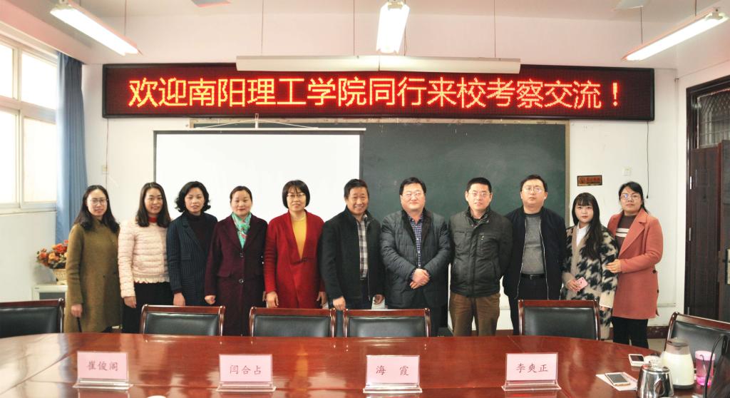 3月15日上午,南阳理工学院澳门十大电子正规游戏网站书记闫合占、副院长海霞一行4人来十大电子官网考察学习,十大电子官网澳门十大电子正规游戏网站领导班子和国际教育学院领导班子接待了来访单位,并分别进行了对口经验交流。