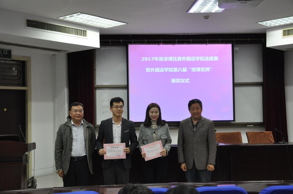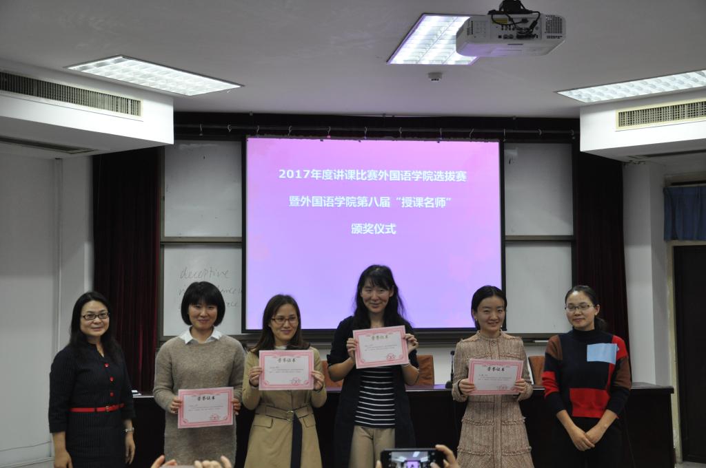 为积极落实学校2017年度教师讲课比赛院部选拔工作,澳门十大电子正规游戏网站在9月份已部署该赛事,三系四部40岁以下教师全部参加了预赛,共推选出7位教师参加学院选拔赛。本次讲课比赛从参赛教师提交的三个教学专题中随机抽取,赛前30分钟告知,评委根据选拔赛评分规则对各参赛选手依次评分。经过激烈角逐,最终英语系余天敏老师荣获比赛一等奖,王磊、龚梦南老师荣获二等奖,王杉杉、季江静、彭琰、张红丽老师荣获三等奖。最后,余天敏老师将代表外语学院参加学校的讲课比赛,同时获得“澳门十大电子正规游戏网站第八届授课名师”的荣誉称号。