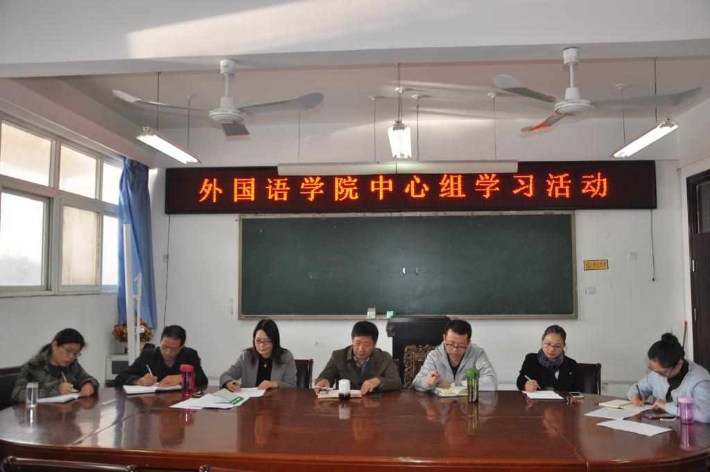 11月3日上午,十大电子官网在11号楼214会议室召开十九大精神集体学习会,澳门十大电子正规游戏网站院长郭万群、党总支书记姚晓鸣、副院长柴高洁、副书记周全营、院长助理马春丽、工会主席闫秋霞、办公室主任郝菁参加会议。会议由姚晓鸣书记主持。