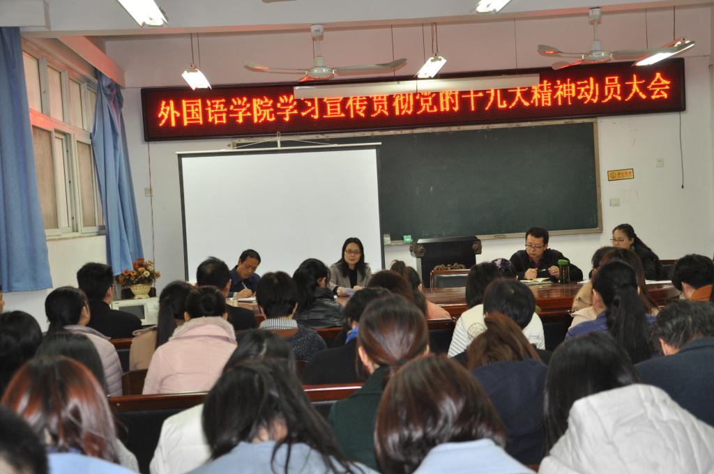 11月17日下午,十大电子官网在南区11号楼214会议室召开了澳门十大电子正规游戏网站学习贯彻党的十九大精神动员大会。澳门十大电子正规游戏网站全体教职工参加了此次会议。会议由学院党总支书记姚晓鸣主持。