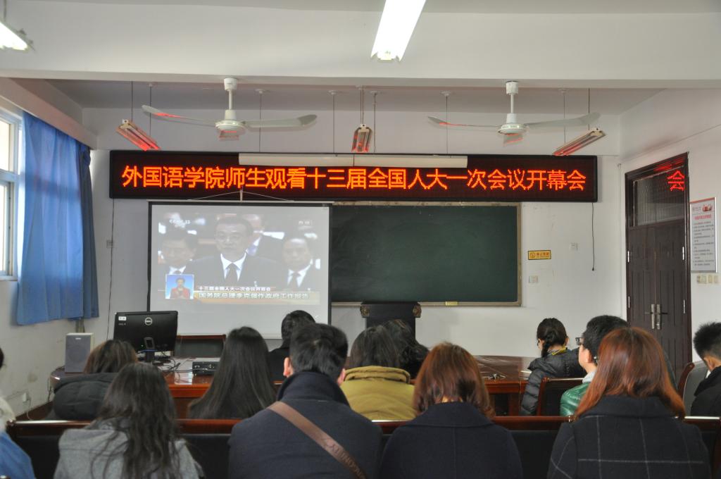 2018年3月5日上午九点澳门十大电子正规游戏网站党总支组织学院师生在11号楼214集中收看了“十三届全国人大一次会议开幕会”,澳门十大电子正规游戏网站党总支书记姚晓鸣、院长郭万群、副书记周全营、副院长柴高洁、院长助理马春丽以及没课的教师和学生参加了集中收看学习活动。