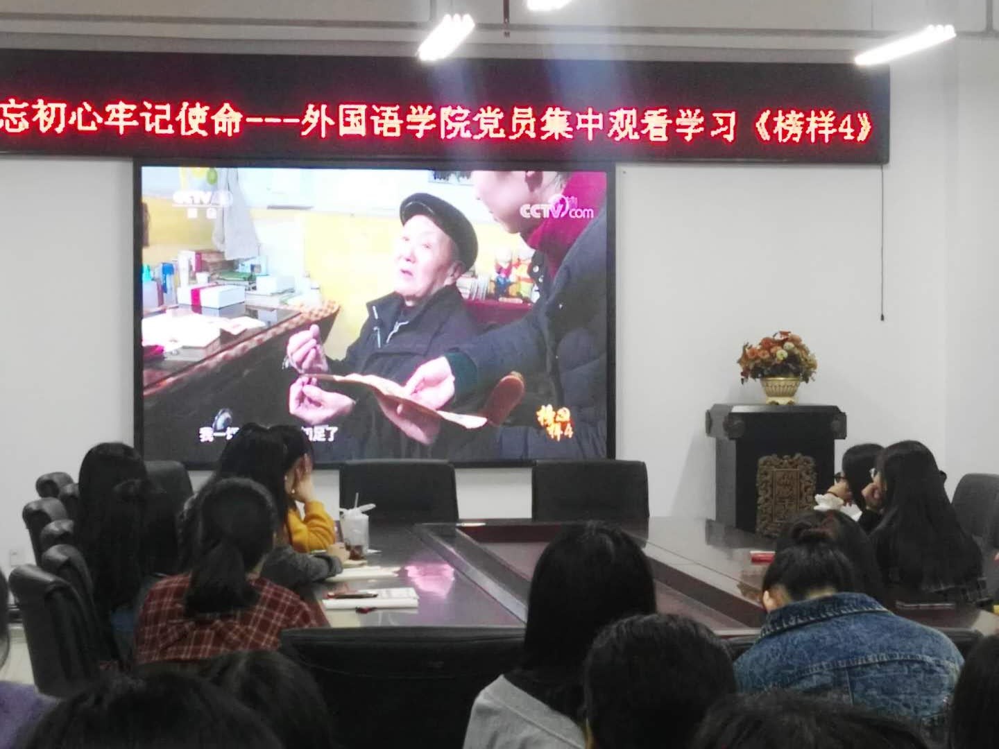 澳门十大电子正规游戏网站在学院党委指导下,把“不忘初心,牢记使命”主题教育作为学院质量提升,高效发展的核心工作,在“守初心、担使命,找差距、抓落实”上取得了一定的成效。为进一步加强“守初心”的责任和使命,按照省委主题教育第十一巡回指导组的工作要求,10月21日晚8:00学院学生党支部组织全体学生党员和新一期入党积极分子在学院会议室集体收看了由中央组织部、中央广播电视总台联合录制的《榜样4》专题节目。本档节目是“不忘初心、牢记使命”主题教育的重要学习资料,是弘扬社会主义核心价值观的优秀内涵,是反映当代中国共产党人在各自工作岗位“守初心”的真实写照,是深入学习贯彻习近平新时代中国特色社会主义思想、开展“不忘初心、牢记使命”主题教育的重要内容。