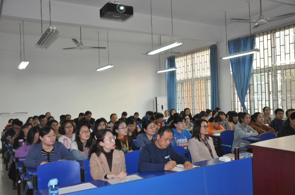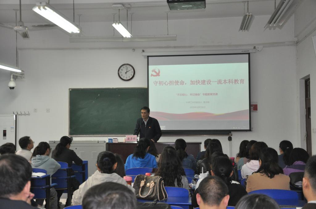 按照中原工学院党委“不忘初心,牢记使命”主题教育关于学校领导班子讲好专题党课的工作部署,为扎实开展好“不忘初心、牢记使命”主题教育,2019年10月30日下午,在2号组团教学楼104教室,唐多毅副校长为澳门十大电子正规游戏网站全体党员讲了题为《守初心担使命,加快建设一流本科教育》党课。澳门十大电子正规游戏网站全体师生党员参加此次党课学习。