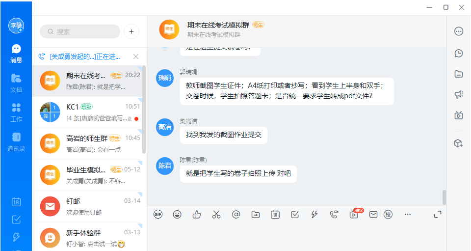 杨道云副院长首先介绍了澳门十大电子正规游戏网站毕业生补考和重修考试的开展情况,以及即将进行的期末考试课程考核方案规划,鼓励教师们面对疫情,共克时艰,并鼓励教师们在测试题型方面要大胆改革,同时要保证线上考试方案的公平、公正、合理、可行。接下来计算机辅助教学部副主任关成勇老师详细介绍和演示了本次期末考试线上的流程。本学期的期末考试将以钉钉为平台,学生采取双机位,即每位同学同时准备好手机和电脑。考试前两天,出卷老师担任主监考,需要建立钉钉群,通知学生进群,进行线上环境功能测试。考试当天,出卷教师提前10分钟在群里发布试卷,以群公告的形式告知学生考试注意事项,由主监考和副监考同时在线监考。考试结束后10分钟内学生将答卷拍照上传至群里,待监考老师查验无误后方可退出群。
