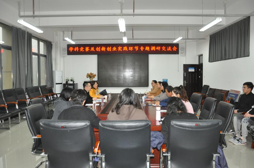 11月18日下午,创新创业学院副院长郑瑾一行3人来十大电子官网开展学科竞赛及创新创业实践环节专题调研。十大电子官网党委书记姚晓鸣、副院长杨道云、副书记周全营及专业系部主任参加了座谈会。