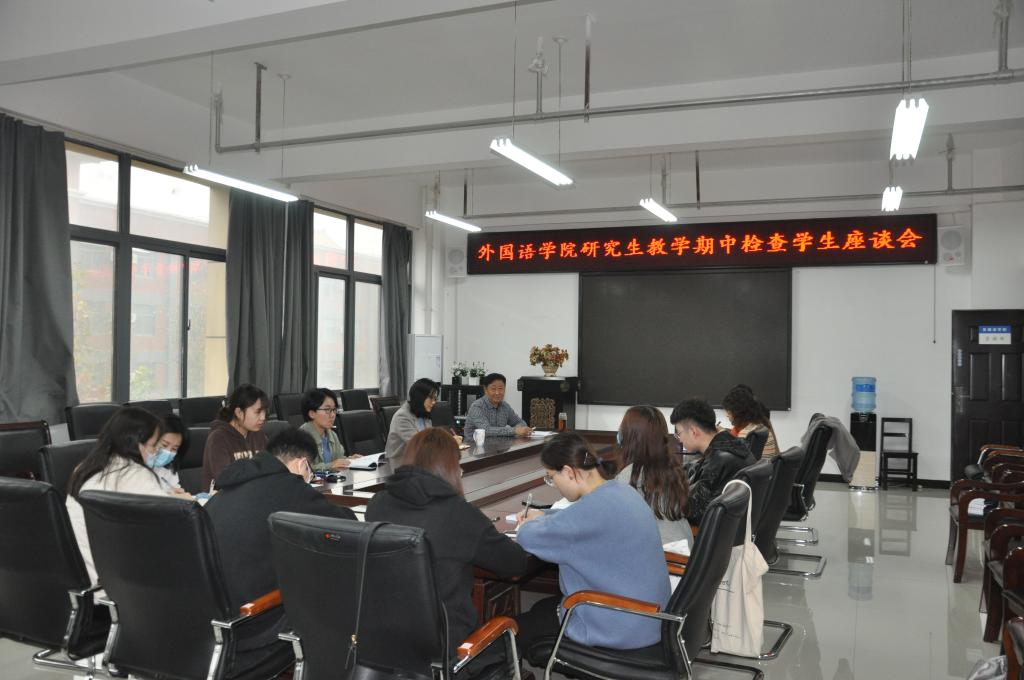 11月17日上午,在3号组团楼A402会议室十大电子官网召开研究生教学期中检查学生座谈会,郭万群院长、姚晓鸣书记、杨道云副院长、刘卫红副院长和全体研究生参加了座谈。座谈会主要针对课程设置,教师上课情况,学生技能掌握,课堂管理等方面进行充分讨论。