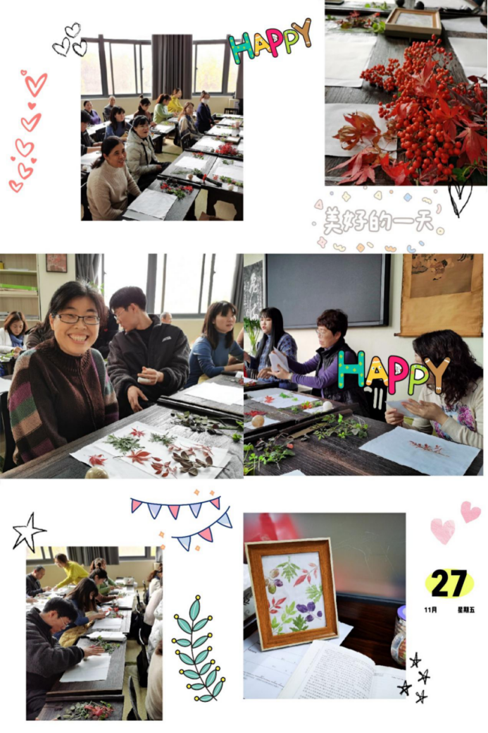 为了丰富澳门十大电子正规游戏网站教职工们的业余生活,11月27日下午,在三号组团楼B423室,澳门十大电子正规游戏网站分工会与学校手工制作协会联合举办了手工制作活动——植物拓印。本次活动得到教职工的热烈响应,校手作协会会长边冬梅、副会长高桂芬、国教学院副院长刘卫红、校工会杨冬梅、澳门十大电子正规游戏网站分工会主席闫秋霞、澳门十大电子正规游戏网站副院长杨道云、副书记周全营以及澳门十大电子正规游戏网站教师共30多位参加了本次活动。