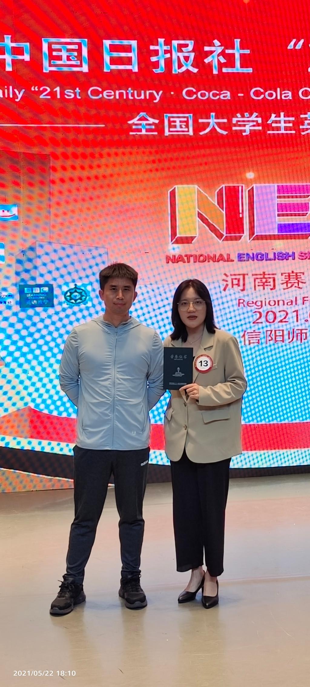 5月22日,第26届中国日报社“21世纪·可口可乐杯”全国大学生英语演讲比赛,河南赛区决赛在信阳师范学院举行。十大电子官网赛前动员学生积极参加,组织校内选拔赛,经层层选拔,确定英语系大二学生张心月代表学校参加河南省赛区决赛,并最终获得河南省赛区决赛一等奖,在所有32名决赛选手中名列第5,所有女选手中名列第1。