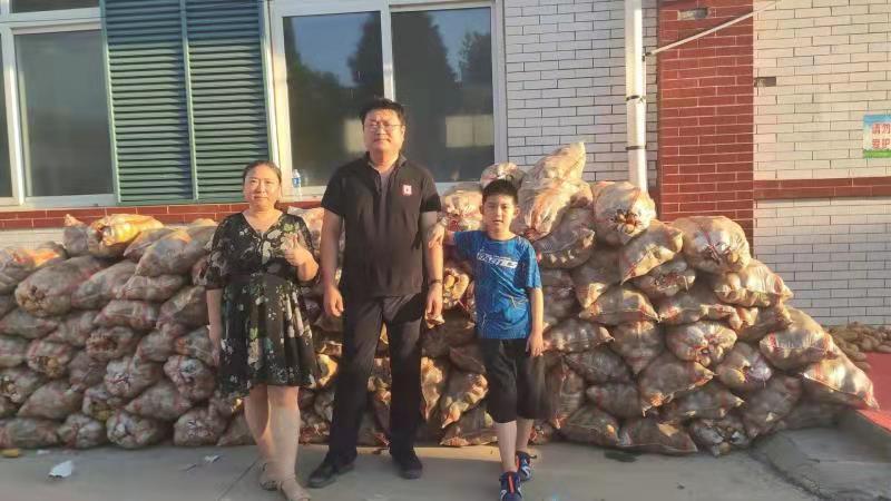 27日凌晨五点,她和丈夫、儿子、哥哥、姐姐、侄子、外甥们一起去找菜农收菜,忙到中午,在有限的善款数额下共筹集精品土豆11000斤、冬瓜9600斤、辣椒1000斤。亲人们挥汗如雨,几小时便完成了五百余袋蔬菜装车。