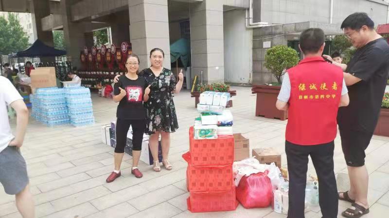 第二天,早上6点,她跑到市场采购了100条毛巾、袜子,15提抽纸,带上热心邻居们捐赠的香皂、洗发水、风油精等物资,和家人一同送到了郑州四中。