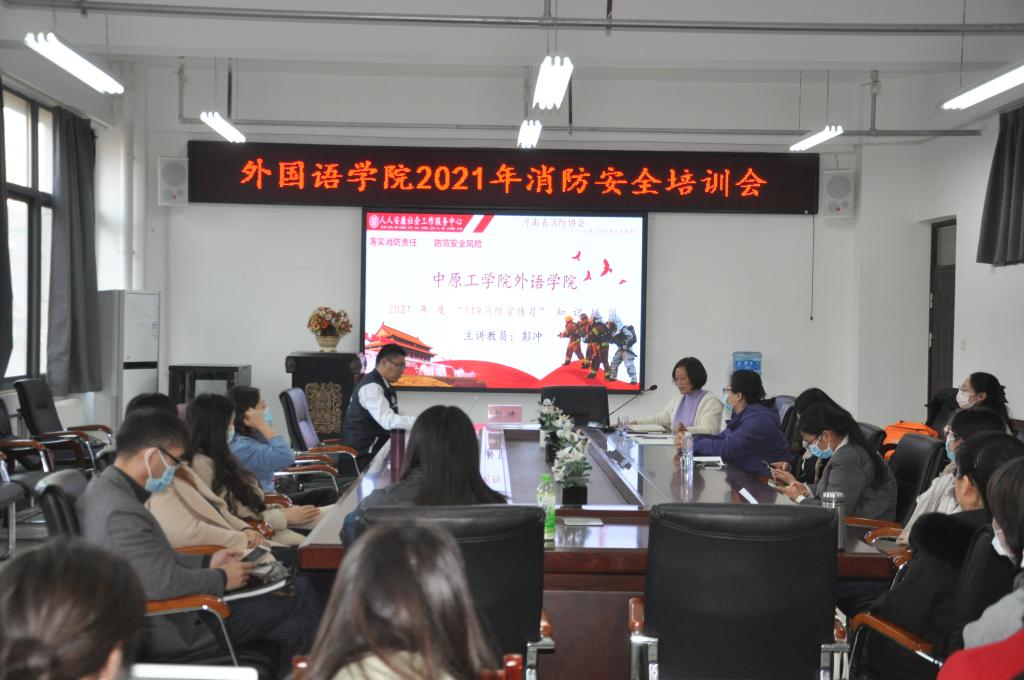 为深入贯彻习近平总书记关于安全生产和宣传思想工作的重要论述精神,贯彻落实党中央、国务院及河南省关于安全生产重大决策部署,进一步加强消防安全教育工作,整体提升学院教师消防安全素质和安全隐患防范意识。12月5日下午,在3号组团楼A402会议室,应澳门十大电子正规游戏网站邀请,河南省消防协会的彭冲教员来十大电子官网做消防安全知识培训,十大电子官网全体教职工参加了本次培训。