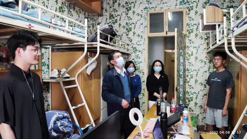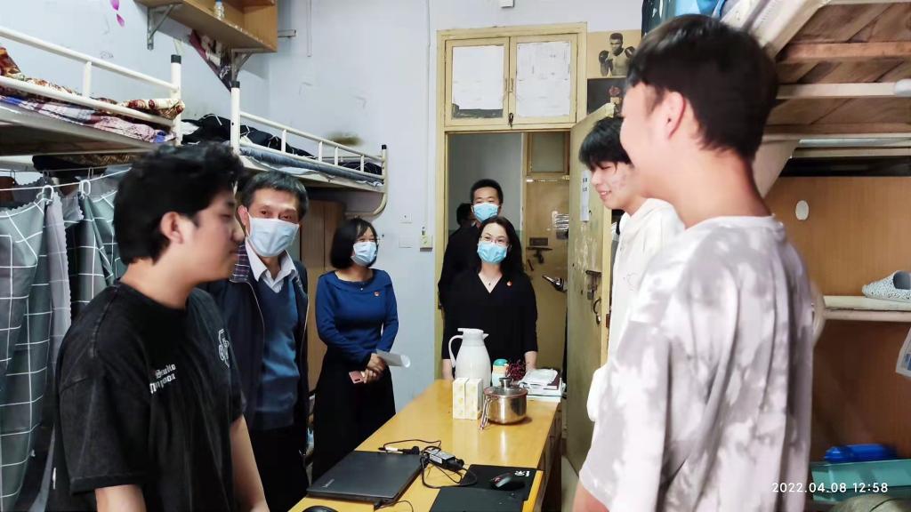 4月8日,副校长唐多毅到十大电子官网学生宿舍走访,深入了解学生生活学习情况,指导学生疫情防控工作。澳门十大电子正规游戏网站党委书记柳素平、院长姚晓鸣陪同走访。