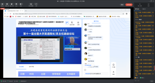 活动二:组织大学外语教学部主任及教师观看“第十一届全国大学英语院长/系主任高级论坛”。4月9日至10日,教育部高等学校大学外语教学指导委员会主办的“第十一届全国大学英语院长/系主任高级论坛”举办,澳门十大电子正规游戏网站积极组织大学外语教学部主任及教师观看,共享外语教学经验、探索外语教改路径、生发外语教育思想。