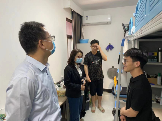 5月1日,学院院长姚晓鸣带队,副院长柴高洁、副院长薛冬梅、学科秘书吕文韬、辅导员刘爽一起走访了研究生宿舍。查看和了解了研究生宿舍的生活环境和学习环境,勉励学生要利用宿舍不同专业共同居住的生活环境,加强跨学科思维,共同探讨问题,营造宿舍研究学习的好氛围。针对学生反映的生活问题,学院也做好了相应记录,帮助学生解决。