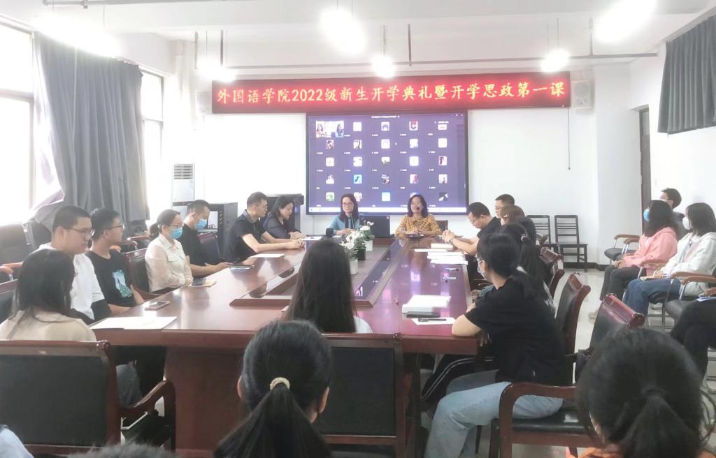 9月20日下午,十大电子官网在3号组团楼A座402会议室举行2022级学生开学典礼暨新生思政第一课。会议以线上线下相结合的方式召开,学院领导班子全体成员、各专业系部主任、学工办、教学办、2022级学生班主任、全体新生参加了会议。