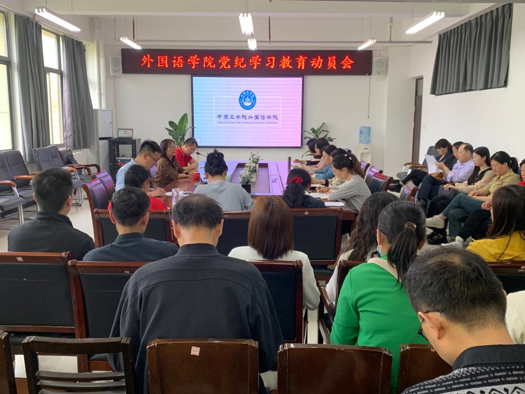 学院党委副书记常潞炜传达领学学校《中共中原工学院委员会关于开展党纪学习教育的工作方案》,方案要求从严从实抓好党纪学习教育,使全校党员、干部搞清楚党的纪律规矩是什么,弄明白能干什么、不能干什么,进一步强化纪律意识、加强自我约束、提高免疫能力,增强政治定力、纪律定力、道德定力、抵腐定力。