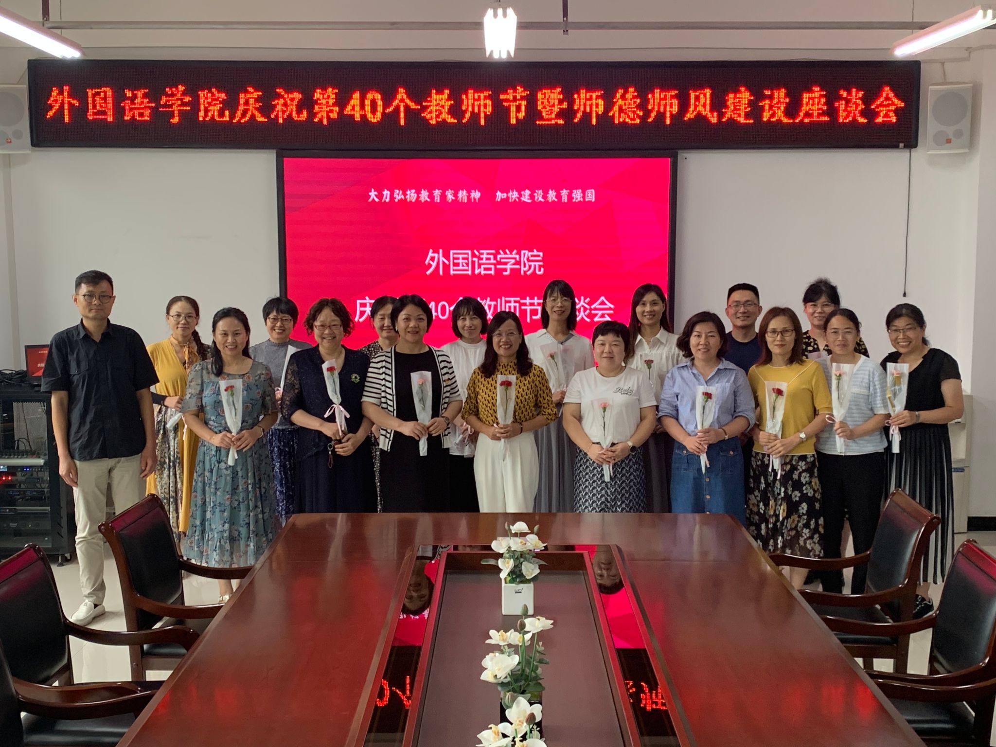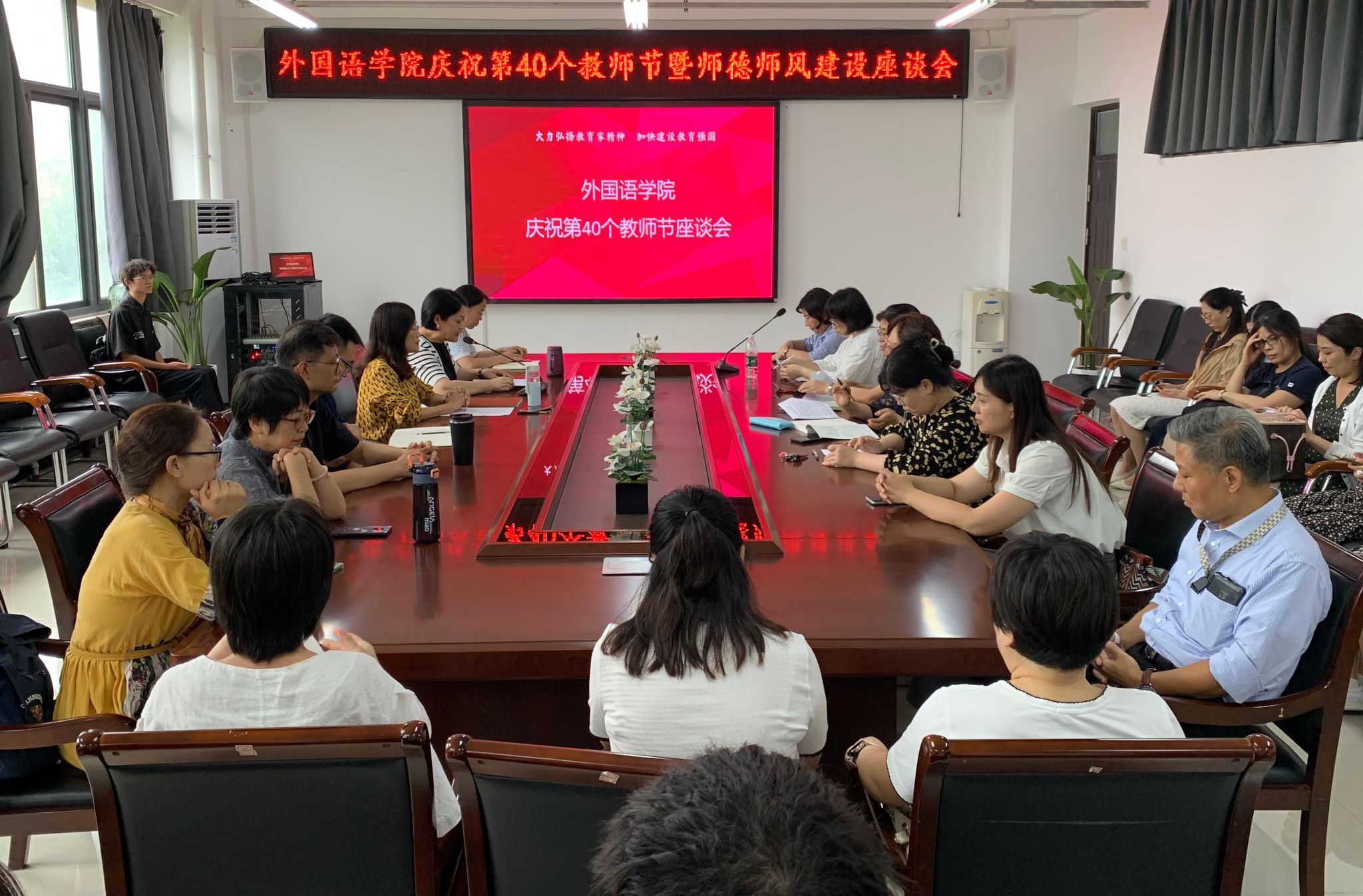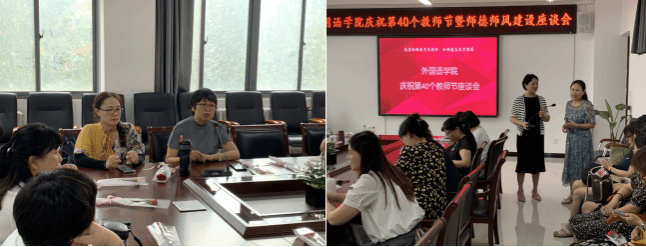 为了庆祝第40个教师节,持续加强师德师风建设,9月10日下午,澳门十大电子正规游戏网站在龙湖校区3号组团楼A402会议室举办了师生座谈会。副院长薛冬梅主持会议,学院班子成员、教师及学生代表共40余人参会。