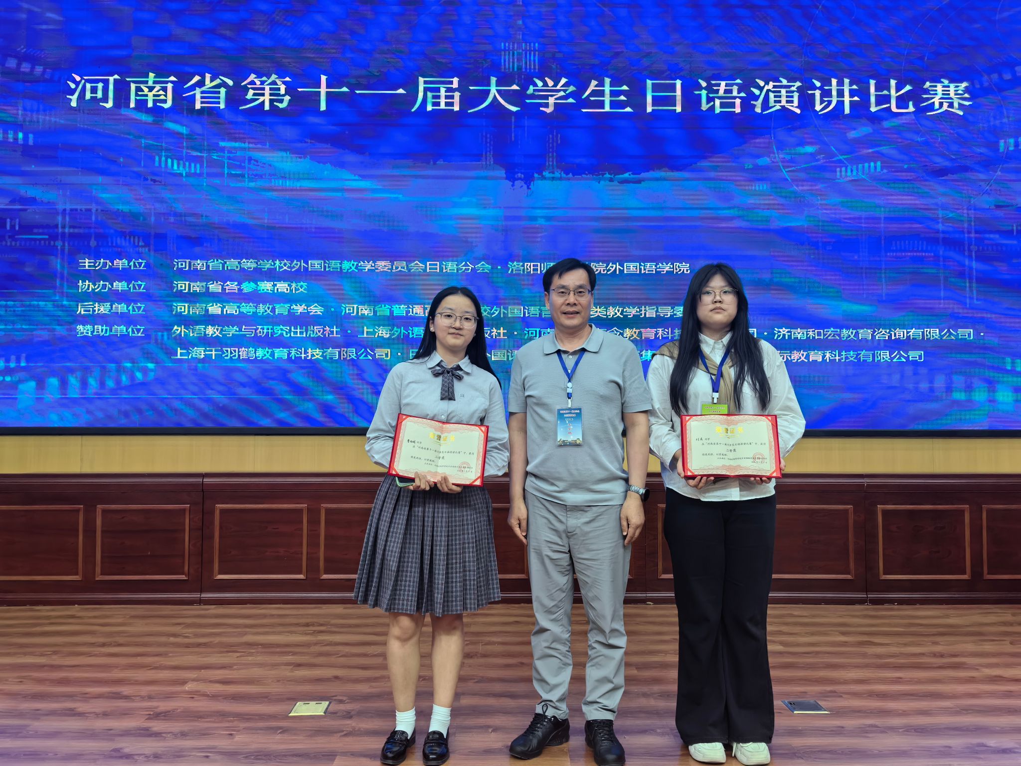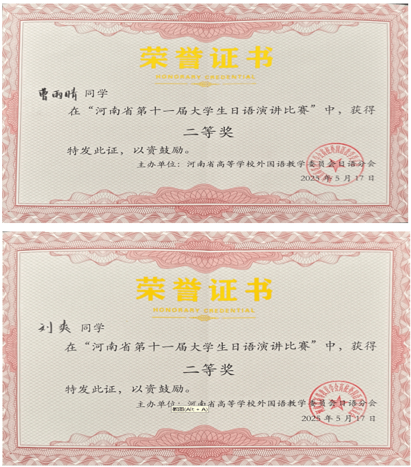 十大电子官网日语系王学鹏老师带领曹雨晴、刘爽两位同学参加了比赛。经过现场激烈角逐,两位同学均获得了二等奖。