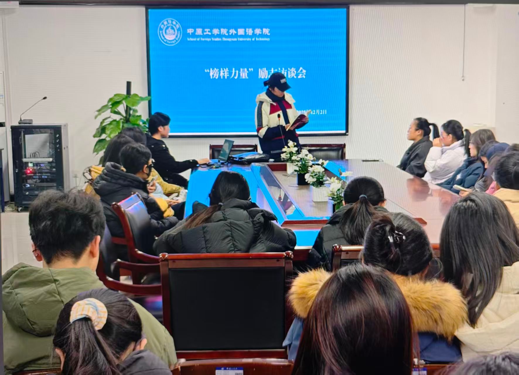 2025年12月2日晚,澳门十大电子正规游戏网站在三号组团楼A401会议室举办“榜样力量”励志访谈会。活动以“聆听榜样故事,汲取奋进力量”为主题,面向2025级全体新生开展,通过身边榜样的真实分享,激励学生明确方向、踏实前行。
