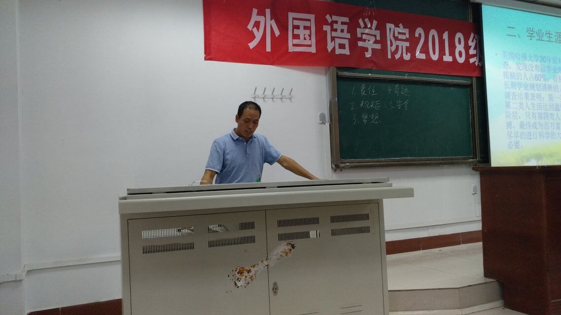 2018年9月21日下午2点,澳门十大电子正规游戏网站筹备已久的2018级新生入学教育大会在四号教学楼214教室正式开始。莅临本次会议的有党总支副书记周全营,学生会部分部长以及全体大一新生积极到场参与。