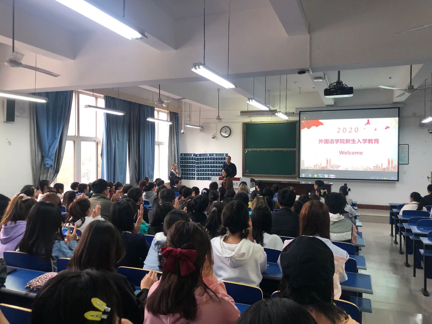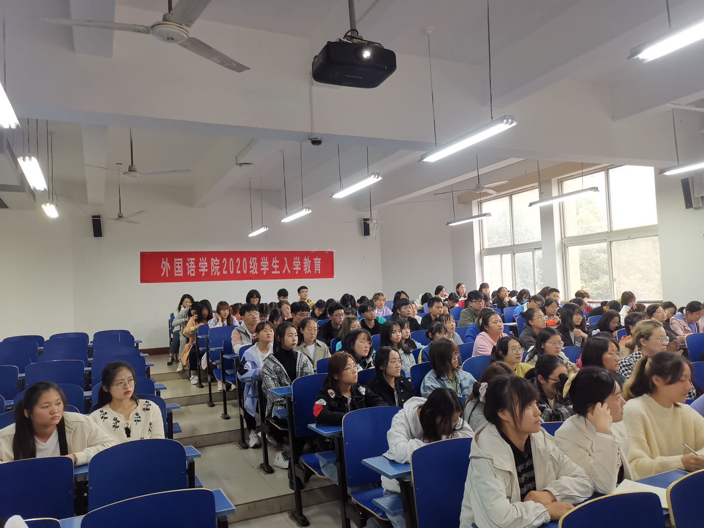 会议开始,党委副书记周全营代表澳门十大电子正规游戏网站对2020级新生的到来表示热烈欢迎并进行以“高考不是终点”为主题的讲话,通过学习方法、自我管理等方面对同学们提出建议;在校生代表日语182班易淑悦及新生代表汉语201班郭雨蝶的发言句句流露真情实感,字字体现澳门十大电子正规游戏网站学生风采;学工办主任葛士阳从国家宪法教育、社会主义核心价值观教育、专业学业教育、诚信教育等八个方面对新生进行入学教育。