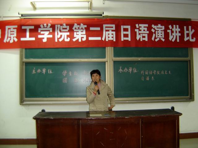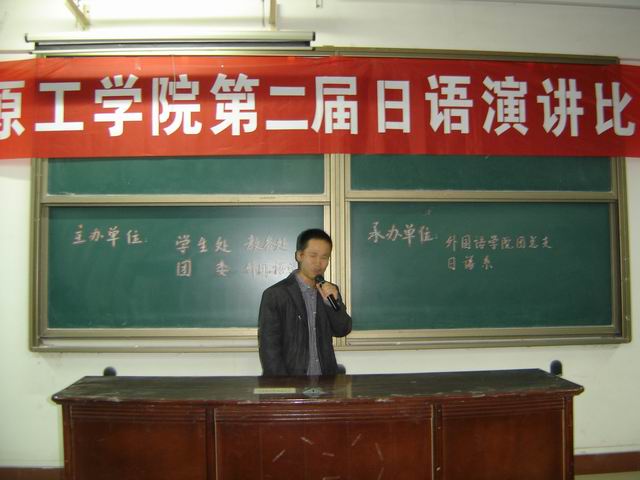 4月7日晚6时,由学生处、教务处、团委、澳门十大电子正规游戏网站主办,澳门十大电子正规游戏网站团总支、日语系承办的第二届日语演讲比赛在3#210拉开序幕。澳门十大电子正规游戏网站副院长杨道云、副书记李向东、团总支书记杨为学、日语系主任边冬梅、日语外教大原知义、讲师张瑜、于勇老师作为评委及嘉宾出席本次比赛。本次比赛由孙世超、李萌园作为主持人。