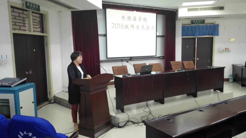 见面会由陈慧副书记主持。陈书记首先向大家介绍了到会的领导老师,与学院领导初次正式见面,同学们感到十分兴奋,听到老师们用专业语言问好,同学们愉快的回应并报以热烈掌声,气氛瞬间变得温馨、和谐。上午的见面会有四个主题,分别是郭万群院长介绍专业及学业规划教育、学院学科建设、科研情况等;李长林书记介绍校情校史,校风校训等;刘卫红副院长介绍如何学好专业,做好职业规划等;陈慧副书记向同学们做安全教育。四位老师认真、热情的向同学们介绍并互动,结束时还分别寄语新同学,教诲之心感染了所有学生。整个见面会持续三个小时,效果良好。