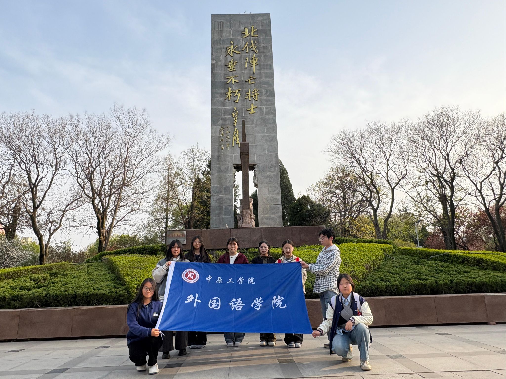 为了让当代青年坚定理想信念,厚植家国情怀,2025年3月31日,澳门十大电子正规游戏网站组织一批学子赴郑州市碧沙岗公园烈士纪念碑开展缅怀先烈相关活动,通过沉浸式参观学习,深切缅怀北伐战争时期为国捐躯的革命先烈。
