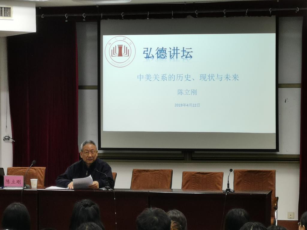 2019年4月22日下午,应澳门十大电子正规游戏网站邀请,中国外交部原驻外大使、总领事陈立钢大使在龙湖校区4号楼311学术报告厅为十大电子官网师生作了题为《中美关系的历史、现状与未来》的精彩讲座,讲座现场座无虚席,澳门十大电子正规游戏网站二百余名师生到现场聆听了报告会,讲座由澳门十大电子正规游戏网站党委书记姚晓鸣主持。