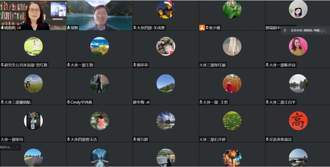 5月19日下午,上海交通大学澳门十大电子正规游戏网站院长、博士生导师常辉教授应邀以腾讯线上会议的形式,为澳门十大电子正规游戏网站教师作了题为《大学英语体系构建与改革实践》的讲座。讲座由澳门十大电子正规游戏网站院长姚晓鸣主持,学院班子成员、大学外语教学部、英语系、MTI教育中心、研究生公共外语教学部全体教师及部分学生聆听了报告。