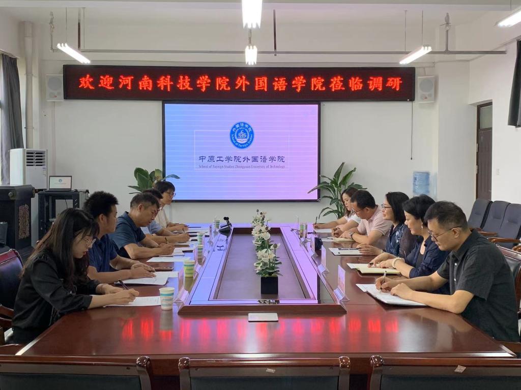 9月1日上午,河南科技学院澳门十大电子正规游戏网站院长李会民、副院长程建锋、副院长万文龙、研究生秘书吕雯霞、教师刘雯一行来十大电子官网调研交流硕士点建设和硕士研究生培养工作,院长姚晓鸣、副院长柴高洁、副院长薛冬梅、大外一部主任李向民、研究生秘书吕文韬参加调研。