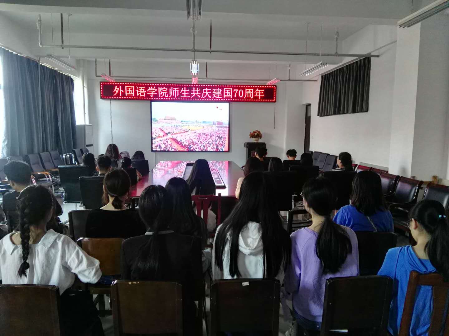 为庆祝中华人民共和国成立70周年,增强当代大学生爱党爱国爱社会主义意识,提高师生在新时代不忘初心奋发有为,勇做追梦人,真正体会社会主义中国从站起来、富起来、强起来的伟大历程,澳门十大电子正规游戏网站在院党委的指导下,结合师生情况,要求集中或分散性地观看中华人民共和国成立70周年的阅兵仪式,并提供相关的观看阅兵后的感想。
