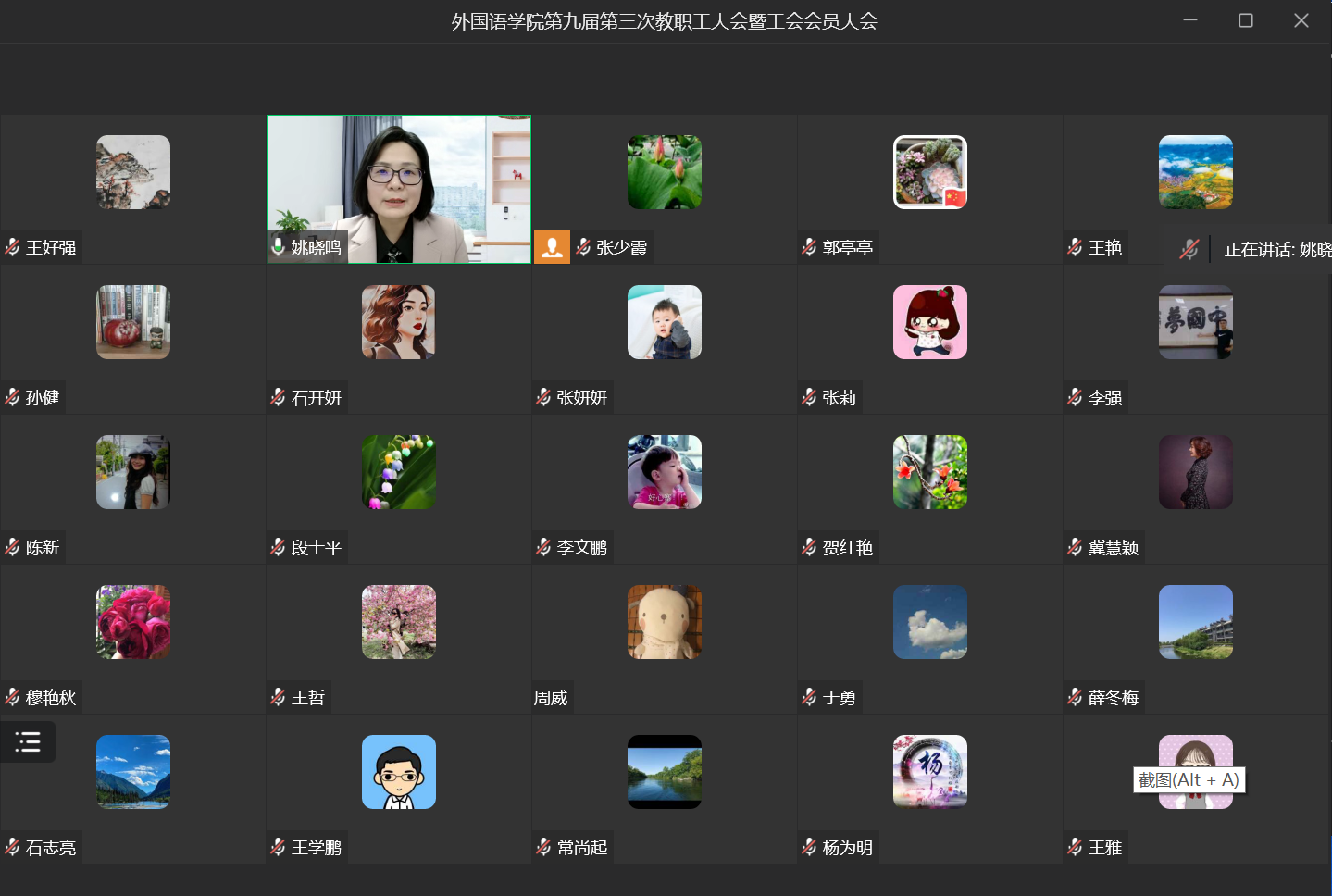 2023年12月29日下午,在庄严的国歌声中,澳门十大电子正规游戏网站第九届第三次教职工大会暨工会会员大会通过线上形式召开,澳门十大电子正规游戏网站全体教职工、工会会员参加了此次大会,会议由澳门十大电子正规游戏网站分工会主席闫秋霞主持。