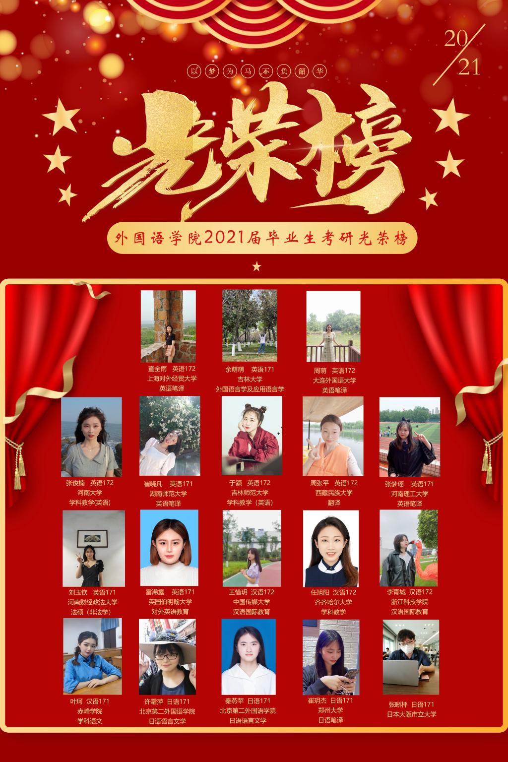澳门十大电子正规游戏网站2021届本科毕业生考取研究生光荣榜