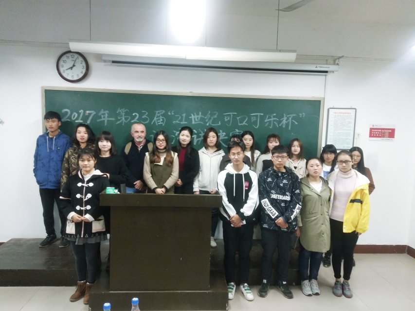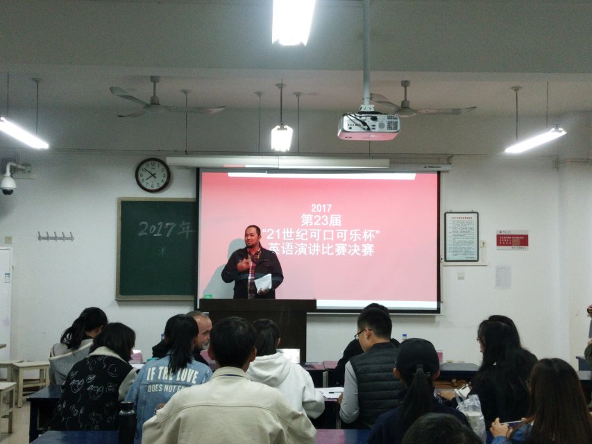 为促进十大电子官网英语学科素质教育的发展,激发同学们学习英语的热情,营造浓郁的英语学习氛围,展现当代大学生的青春风采,澳门十大电子正规游戏网站于2017年11月14日晚六点在11号楼425教室举行了第二十三届“21世纪·可口可乐杯”英语演讲比赛。Donald、Frank、余天敏、刘丽、郝玉娟五位老师应邀作为评委出席了本次比赛,各位同学踊跃参与其中。