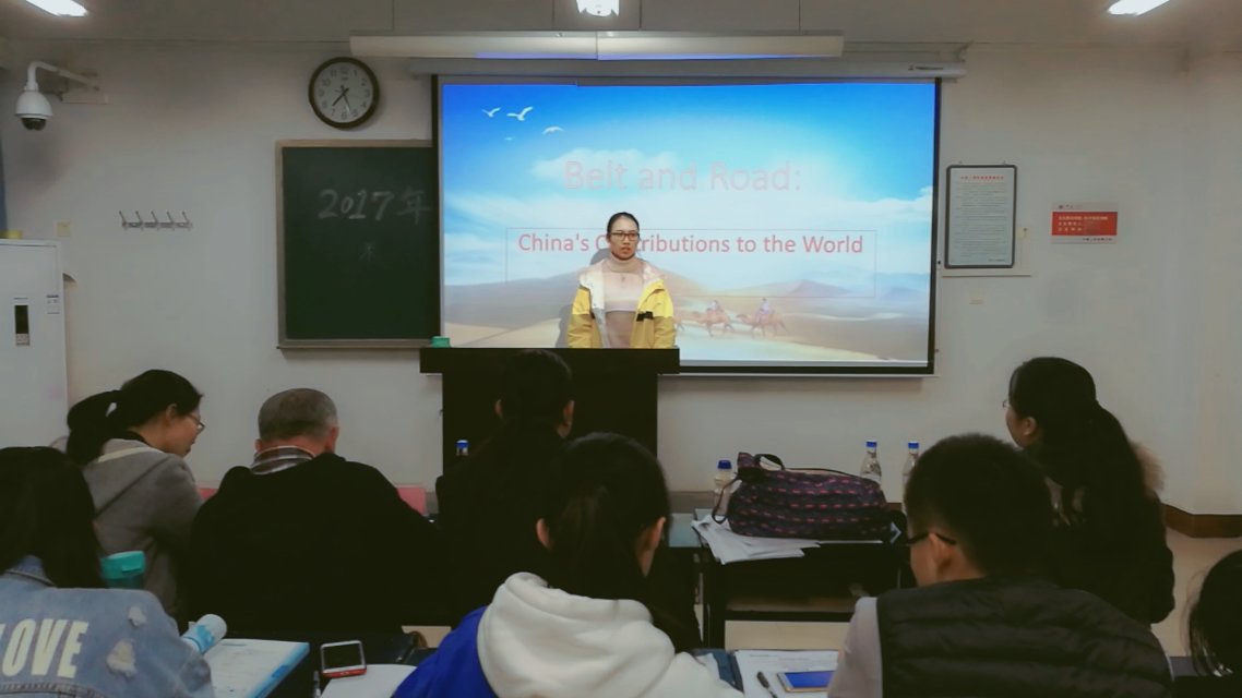 比赛以“Belt and Road: China and the world”为主题,分为“命题演讲、即兴演讲、英语才艺表演”三个环节。比赛伊始,参赛选手依次登场,她们思路清晰,语言流畅,或幽默诙谐或严谨端庄,更有选手现场献声,赢得了观众的阵阵掌声。其后的评审提问环节中,参赛选手对答如流,充分阐述了自己的观点。
